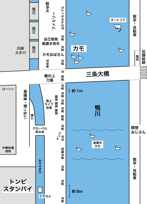 珉珉いきたくなった / “こち on Twitter: "京都の三条大橋から見る鴨川等間隔勢力図 pic.twitter.com/jDEEImEno7"” htn.to/ZmD4w4ua2k