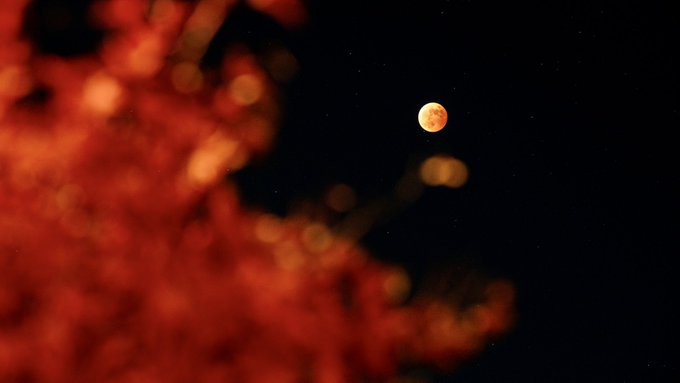 赤い月は紅葉に染められて (昨夜の皆既月食より) #写真好きな人と繫がりたい pic.twitter.com/5NnrX1xjl9